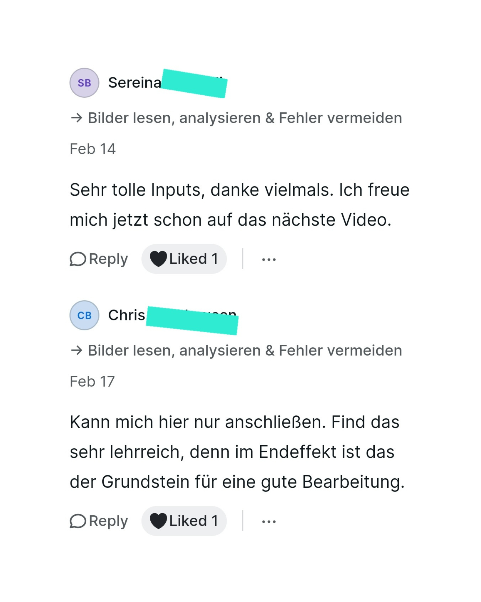 Wir schauen uns unterschiedliche Bilder an, analysieren sie und legen die Bearbeitungsschritte fest. Das ganze läuft nach einem System, das ich dir zeige und welches Du dann auf deine Bilder anwenden kannst.