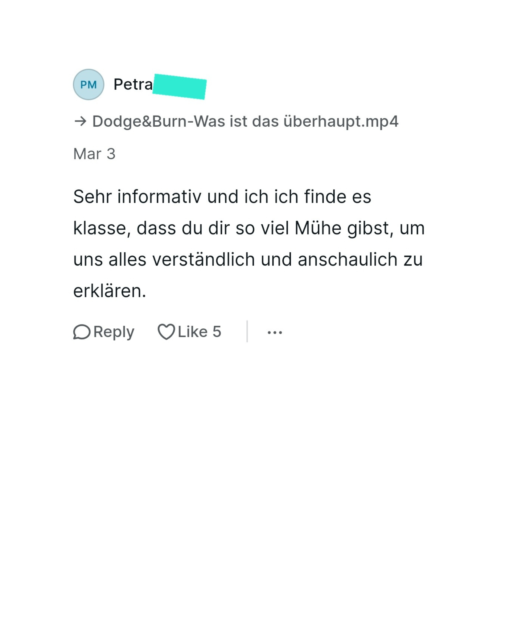 Mein Kurs ist kein "Workflow-Video". Du erhältst keine Schritt-für-Schritt Anleitung zum Auswendiglernen! Die hilft dir nämlich nicht weiter, wenn Du Bildbearbeitung wirklich verstehen und beherrschen willst.